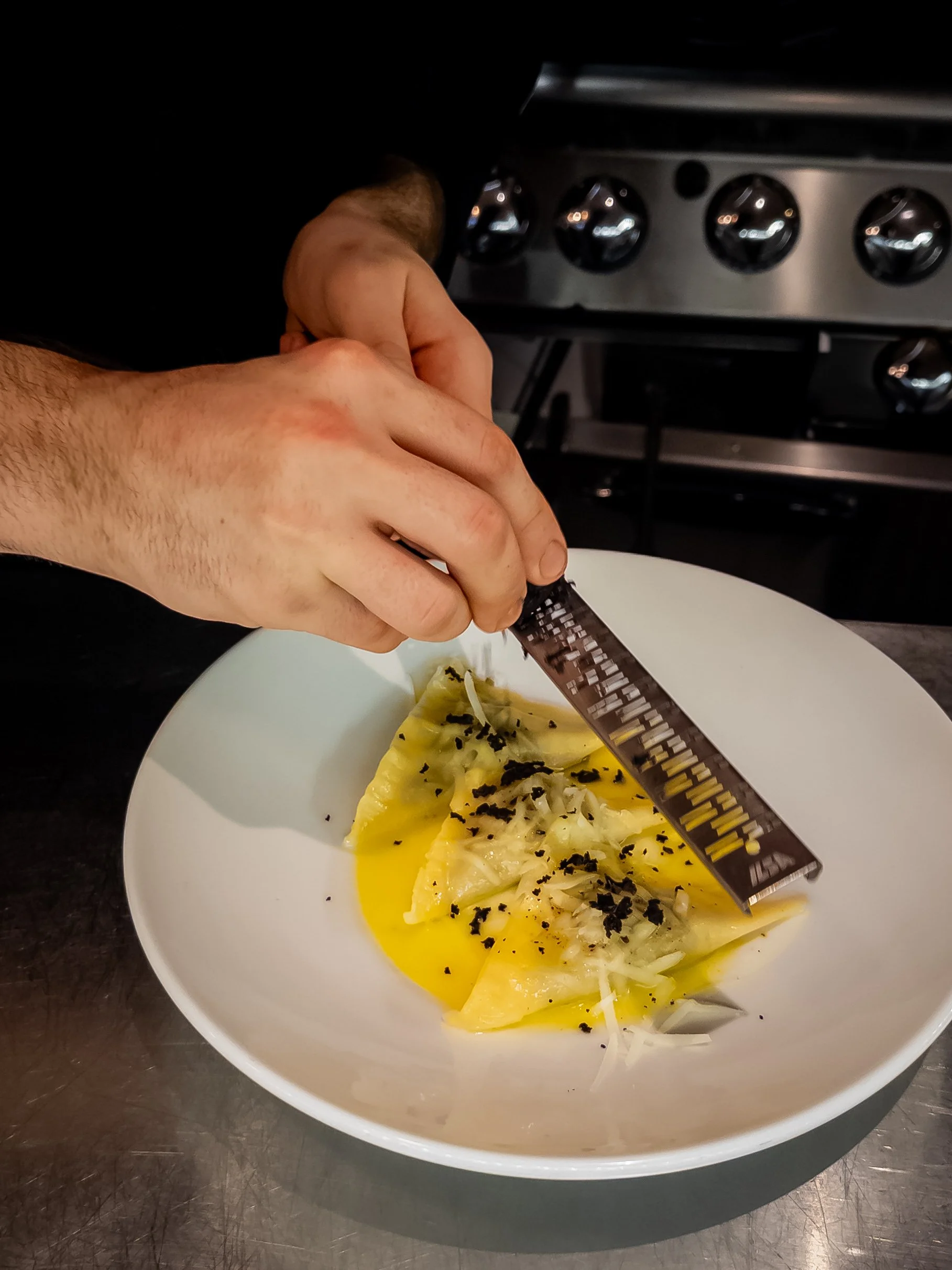 Dishes move between bright coastal flavours and the warmth of handmade pasta. Think oysters, citrus-led kingfish, Parmigiano-filled ravioli, and seasonal plates shaped by what inspires the kitchen each week.